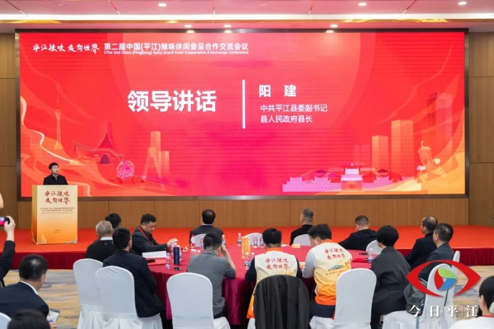 平江县委副书记、县长阳建在讲话中指出,平江是“中国辣味休闲食品之都”“中国辣条之乡”,凭借多年来的实干与匠心,已形成较为完整的休闲食品产业体系,年产值近500亿元,培育了劲仔、麻辣王子等知名品牌,产品远销海内外。他表示,平江县委、县政府将抢抓发展机遇,以更强决心聚链成势,围绕产业链上下游协同发展目标,高效衔接原料、生产、营销、物流等环节,构建更具韧性和竞争力的产业体系;以更大力度推动创新,深化与高校院所及院士专家合作,加强技术攻关,在传承传统风味的基础上提升产品质量;以更宽视野开放共赢,加强与海内外商协会及企业的交流合作,让更多产品走向国际市场;以更实举措优化服务,始终秉持“企业为本、服务至上”理念,优化惠企政策、强化要素保障,让企业在平江安心投资、放心发展。
