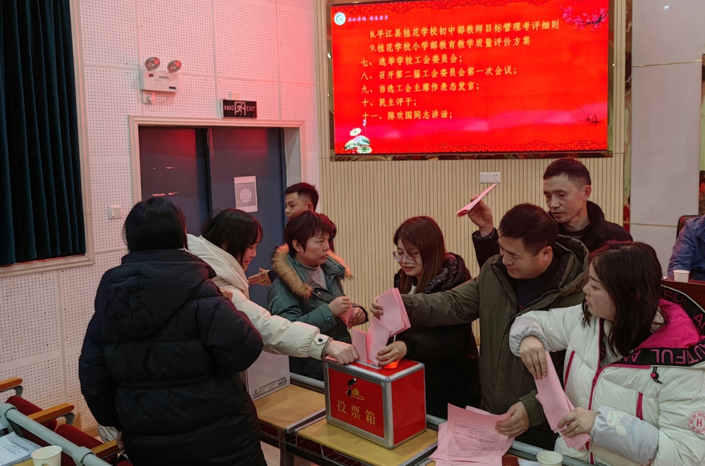 搭民主聚智舞台,促学校稳健发展。12月25日晚,桂花学校第二届教职工代表大会第一次会议在该校合班教室召开,来自全校各年级的53名教师代表汇聚一堂,为学校发展建言献策,共促学校健康快速发展。第一学区副主任陈欢国、联合工会主席余群胜参会并讲话。