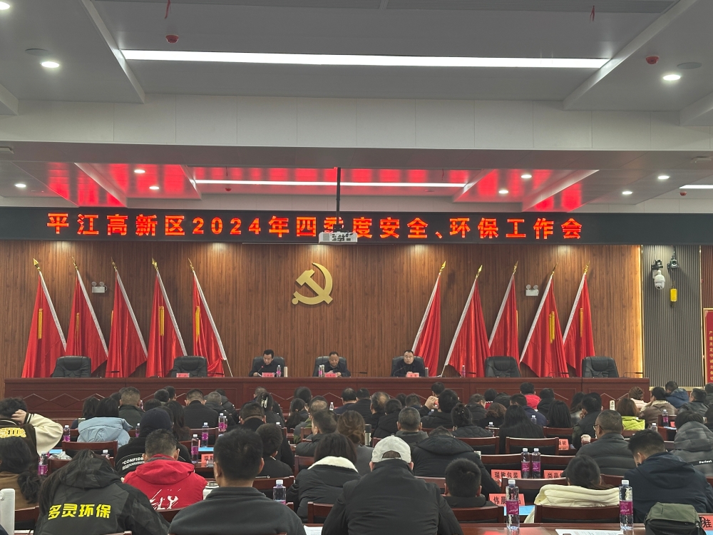12月27日,平江高新区2024年第四季度安全环保工作会议召开,平江高新区党工委书记刘长江,党工委委员、管委会副主任胡焕新,安全办、环保站、环保管家、安全管家、高新区所有在生产经营企业主要负责人、安全环保负责人约200人参加会议。会议由平江高新区党工委委员、管委会副主任向阳主持。
