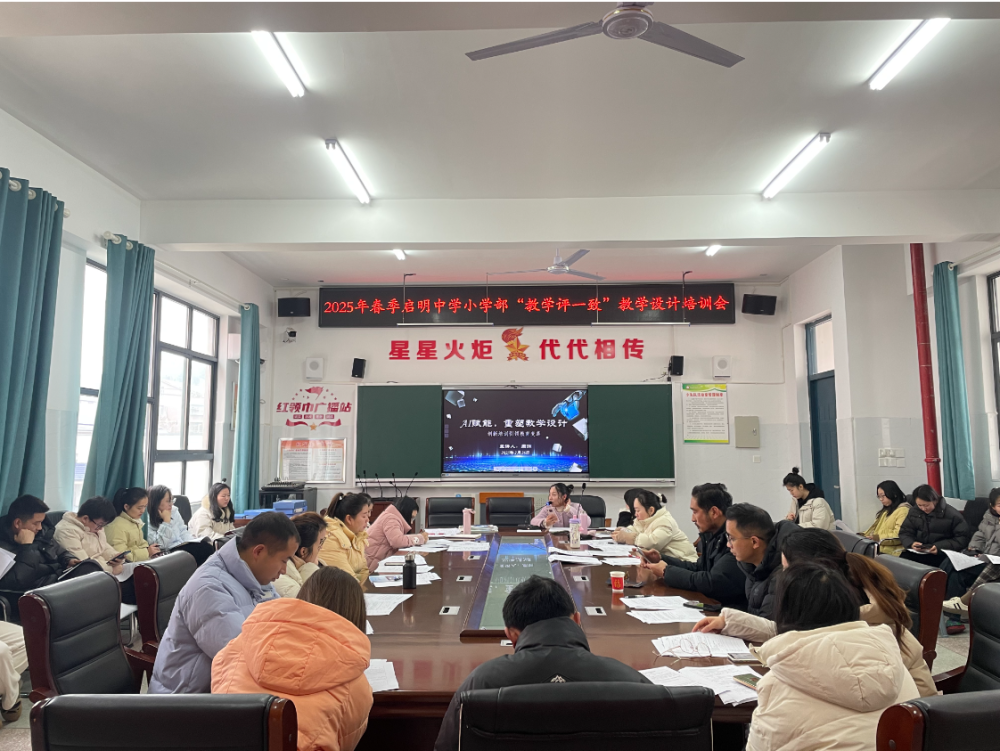 为推进人工智能技术与教育教学深度融合,提升青年教师教学设计创新能力,2025年2月26日上午第二节课,县启明中学副校长周洲以《AI赋能,重塑教学设计》为主题,面向小学部青年教师开展专题培训。此次培训旨在通过“教学评一致”教学设计模式,推动教育变革,为即将举行的校青年教师教学竞赛注入新动能。