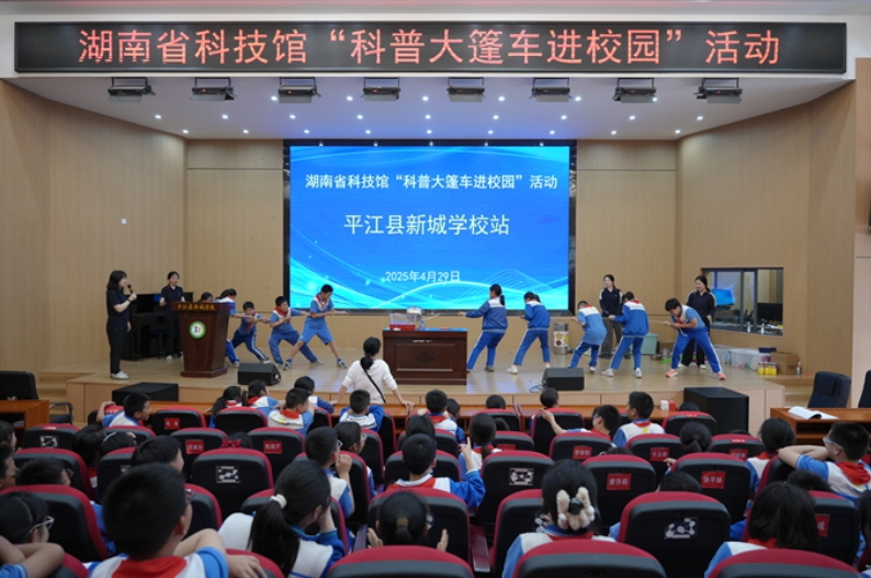 据悉,此次湖南省科技馆“科普进校园”来到平江县,分别在该县新城学校、三阳明德学校、启明中学小学部共进行三场科普秀,通过互动实验、惊险表演打破科学“高冷”形象,在平江这片红色土地上播下科学梦想的种子。相信在未来,这些种子将生根发芽,绽放出绚丽的科技之花。(陈玲 尹钢)