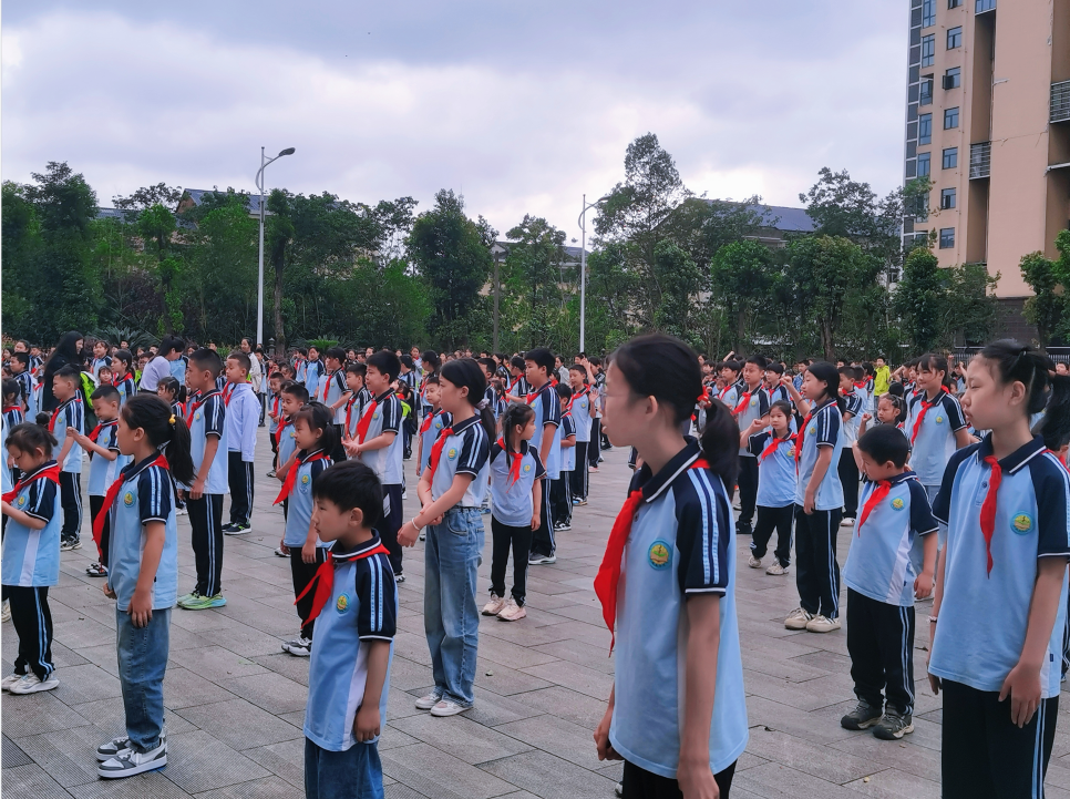 5 月 23 日,伍市学校文化广场上红旗飘扬,锣鼓喧天,队歌嘹亮。304 名一年级学生在党的光辉沐浴下,光荣加入中国少年先锋队,他们以稚嫩而坚定的姿态,开启了人生的崭新篇章。这场庄重的入队仪式,不仅是对少年儿童成长的见证,更是红色基因代代相传的生动写照。