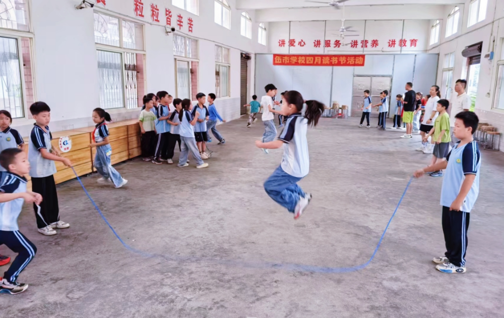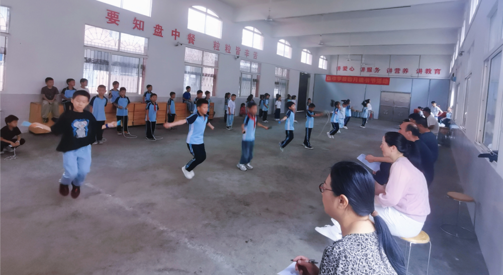6 月 12 日,伍市学校校园内洋溢着青春的活力与热情,一场跳绳比赛在老食堂火热开展。一至五年级学子以绳为翼,在有限空间里跳出无限精彩,把雨天变成了 “逐梦赛场”。