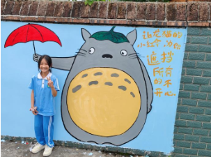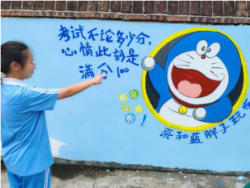 墙面设计暗藏巧思,撑伞龙猫源自学生笔下的“奋斗版”自己,哆啦A梦旁藏着减压游戏入口。“我们希望通过视觉上的萌趣感和互动性,让孩子们自然停下脚步,暂时忘记学习的压力。”策划负责人杨老师介绍,所有形象均有学生参与创作,标语更植入“与墙壁说悄悄话”等互动彩蛋。