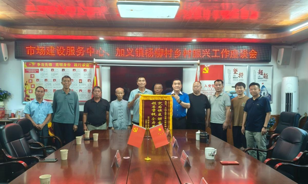 7月29日,加义镇杨柳村村民代表将印有“灾后恢复解囊资助、领导重视全力关心”字样的锦旗送到县市场建设服务中心,以感谢中心在驻村帮扶中的务实举措。