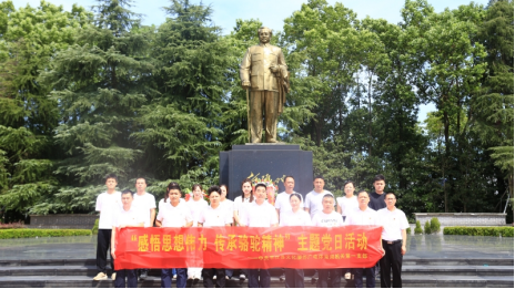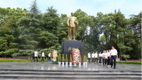 抵达任弼时故居纪念馆后,全体党员首先来到任弼时铜像前,怀着崇敬的心情敬献花篮,向这位为中国革命和建设事业做出卓越贡献的伟人鞠躬、绕场致敬。
