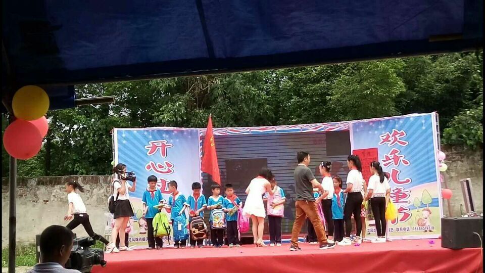 师生节目完后,叶丹走上台,祝福家乡的孩子节日快乐,好好学习,健康成长。接着为全校师生唱了《孤独的橘子妹》、《我相信》、《世上只有妈妈好》三首歌……叶丹青发现自己演唱过的不少歌曲,学生们都能哼唱几句,于是他站在操场中央,带着大家一起大合唱。没想到平日唱歌有点慢半拍的山里学生,用手打起“节拍”还特别娴熟,可能是叶丹领得很认真的原因吧,孩子们都跟着叶丹姐姐摆起手来,气氛很热闹。场景很温馨。学生很高兴。
