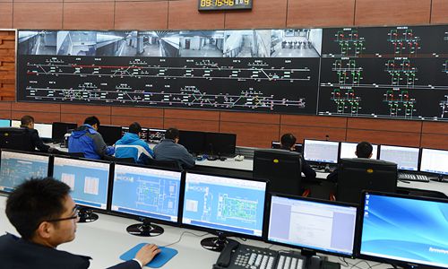 走进1600平方米的巨大圆弧形控制中心,一块长15.8米、高2.6米、总面积41.08平方米的大屏幕,将地铁2号线的站点实景、线路运行、机电设备情况等一一呈现,安装调试人员密切注视着大屏幕上的每个细节,随时向前方发布运行控制指令。