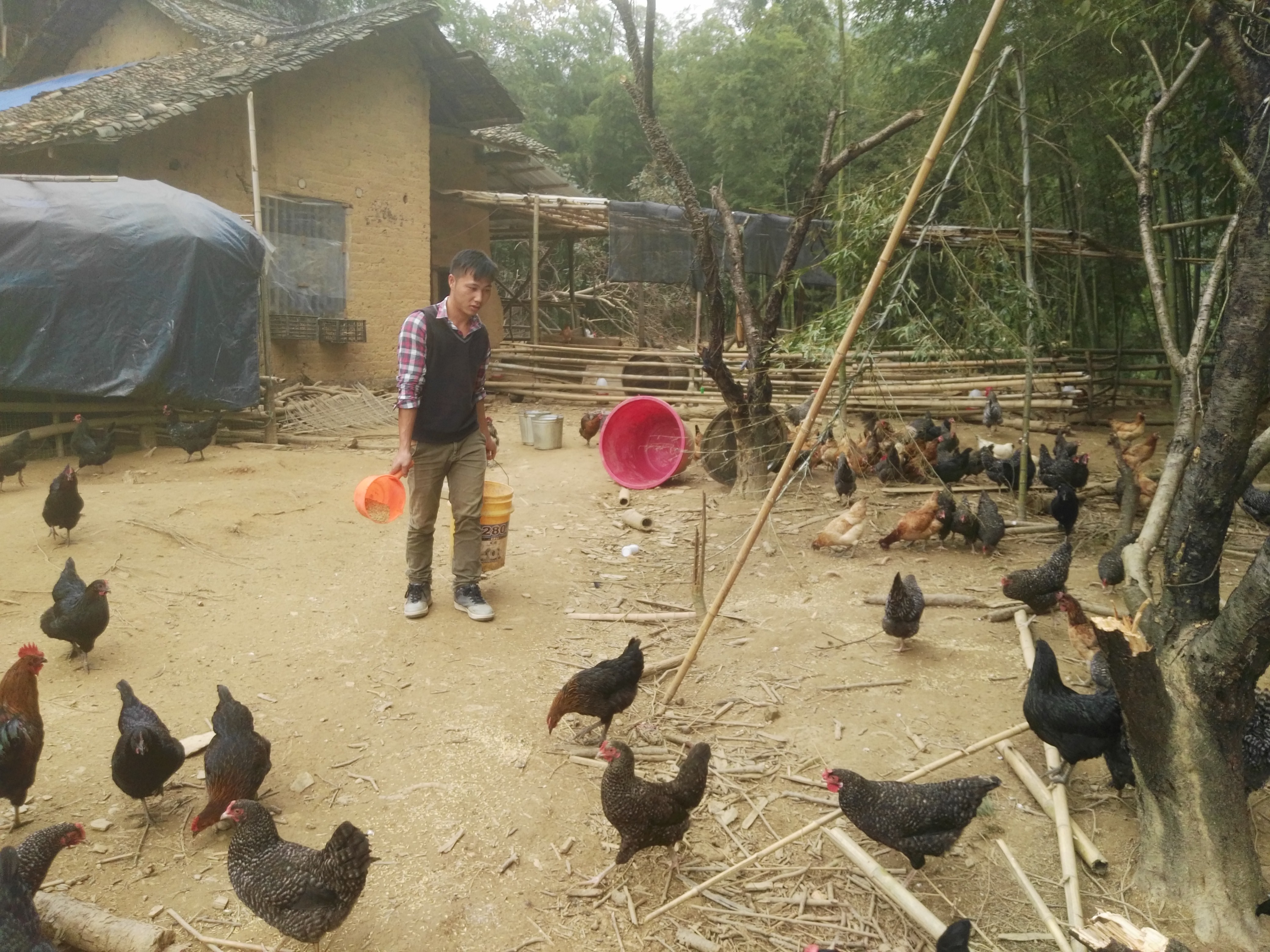 翁彬彬,一位朴实的小伙子。父母都是农民,勤劳务实,然而母亲却因身体做过手术,不能干重活,父亲也年岁已高,家庭生活的重任便交由了这个年小的男子汉。初中毕业的他,跟随着大多数年轻人一样,到外面走南闯北,他什么都做过,搞过装修、修过车、进过厂。通过几年的打拼,2013年他在家人的努力下,盖了新房,却没有多余的钱来装修新房,还欠了数万元。2014年,母亲因脑部动了手术,花去了8万元,更让在外打工的他心念家里,一年回家好几趟。去年在海南做事,他更是放心不下家里。“在外打工也赚不了几个钱,而且照顾不到父母,来回奔波不容易,所以我在家乡发展做点什么?”于是,翁彬彬今年春节后没有出去打工,他想到了养鸡。“养鸡比较简单,成本相比其他养殖而言也较低,加上我们这里地形环境也好。”