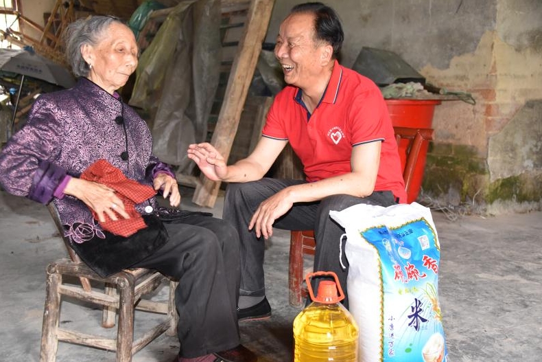 “小城微爱”给了毛爹大展手脚做公益的平台,从筹集善款、慰问困难群众、资助贫困学生、到组织义卖义演等活动,都可以见到毛爹活跃的身影。“小城微爱”成立以来,在南江镇30多个自然村慰问困难群众200多户,他一户也没有落下;与爱心人士对接,资助50多名中小学生完成学业,他往来奔波。帮助他人,他热心参与,全心投入,不计报酬。“小城微爱”的志愿者们送给他一个响当当的名字——“金牌义工”。
