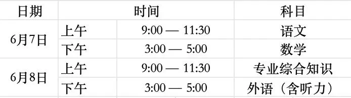 考试时间及科目安排:
