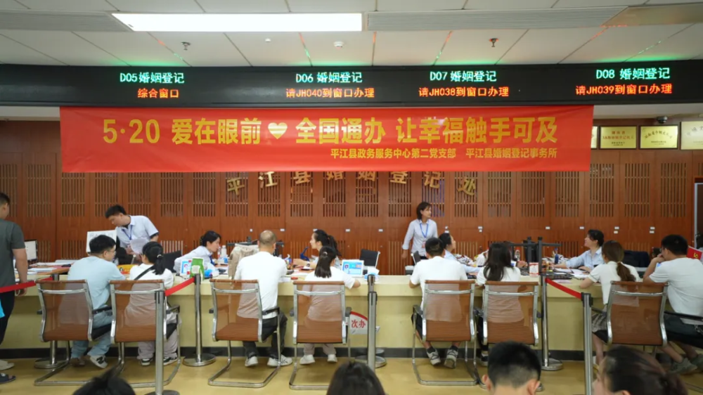 县婚姻登记事务所相关负责人表示,今年“520”是新修订的《婚姻登记条例》正式施行后的首个登记高峰,为了更好地服务前来领证的新人,县婚姻登记事务所通过增派人手、提前上班、延时服务、增设窗口、网上预约、电话咨询等方式,保证婚登处“清零下班”。与此同时,县婚姻登记事务所还联合县政务服务中心第二党支部开展“5.20爱在眼前,全国通办,让幸福触手可及”主题活动,现场为每对办证新人提供赠送玫瑰、免费打卡照相等服务。