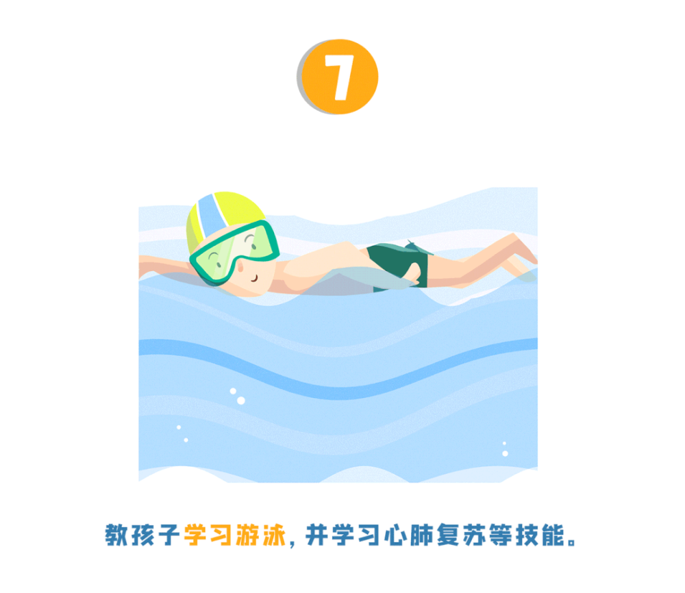 即使身处泳池浅水区或浅水海滩,孩子也可能因滑倒、抽筋、水流湍急等原因发生溺水,家长要时刻对孩子进行看护,不能分心聊天或玩手机。