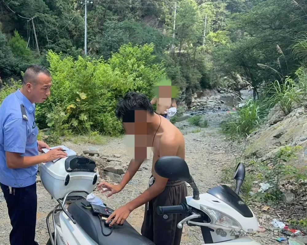 7月7日,加义镇派出所民警在对辖区内景区的野生水域开展拉网式排查和日常巡逻工作,发现芦头河溪水边有4名未成年儿童在游泳。