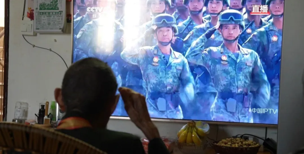 9月3日上午,103岁抗战老兵凌南清早早坐在电视机前,收看纪念中国人民抗日战争暨世界反法西斯战争胜利80周年大会直播。