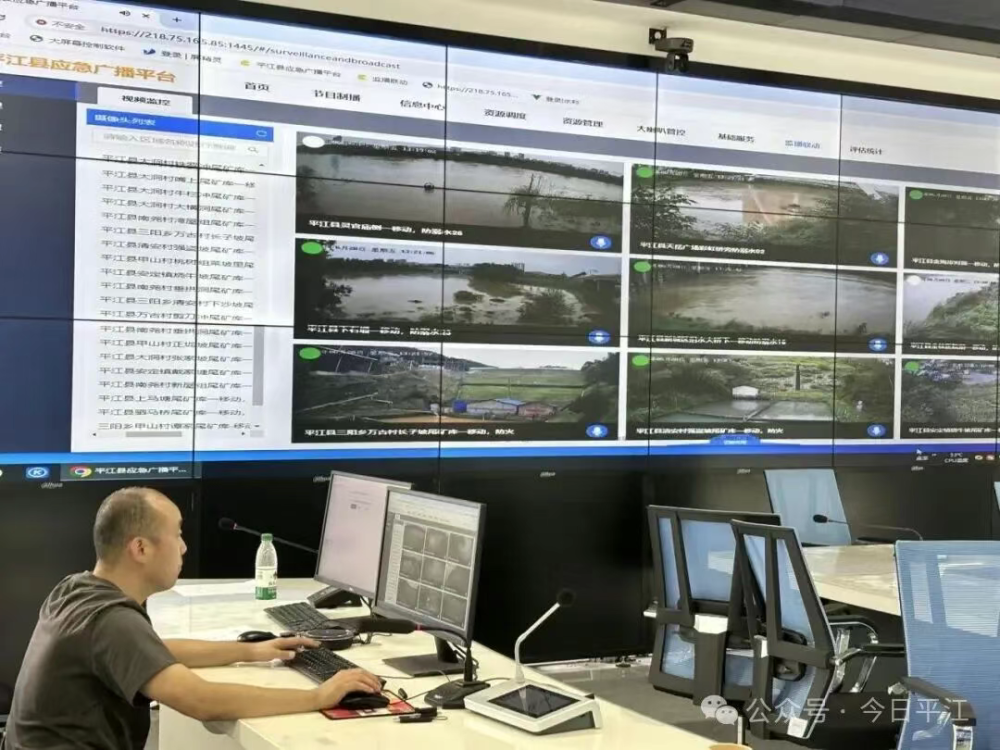 “去年7月,洪水扑来之前,全县6297个应急广播终端已全部进入预警状态;洪峰过境后,应急广播终端一度‘失声’,我们面临中心一楼机房设备被淹、断网、断电、断路的困难,在洪水尚未完全褪去的情况下,县融媒体中心积极自救,清理被淹机房,架设临时线路,24小时内迅速恢复了65%以上终端运行。”县融媒体中心总编室主任陈虹宇指向实时跳动的大屏幕,向回访团队介绍当时的险境与坚守。