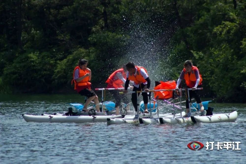 山间碧玉般的“仙人海”湖泊藏着清凉秘境,湖岸可乘竹筏戏水,微风掠过湖面时,丹霞倒影随波荡漾,清凉又治愈。