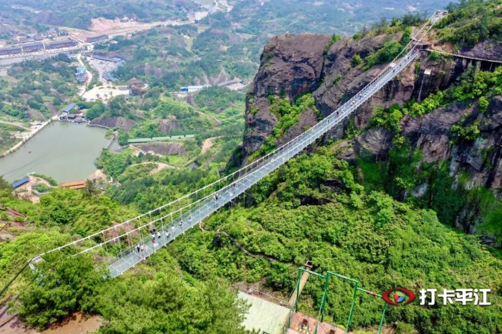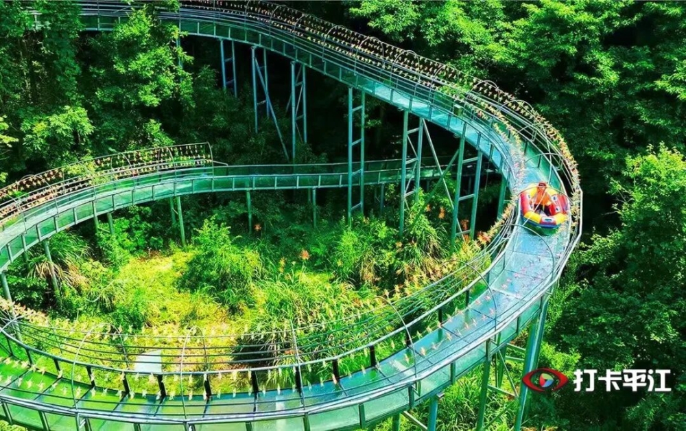 尽兴之后,乘坐滑道总长度超千米的高空玻璃漂流下山,全程穿梭于千米高空,依山势而建的设计带来数十米惊险落差,感受速度与激情的碰撞。