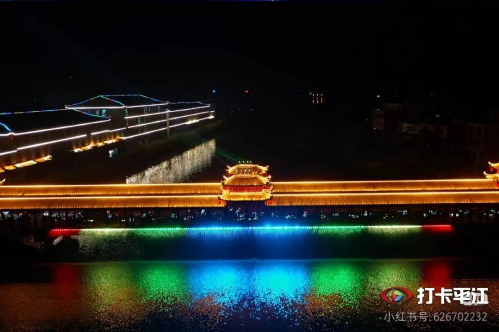 夜幕降临后,梦幻谷开启夜游模式。七彩灯光音乐廊桥(千缘桥)如彩虹横跨溪流,灯光随音乐变换色调,与瀑布流泉交织成梦幻图景,随手拍都是绝美夜景。