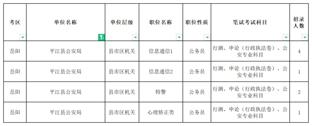 报考人员可登录https://www.pingjiang.gov.cn/35048/35072/72084/content_2353909.html查阅具体的招录单位、职位人数和报考资格条件。