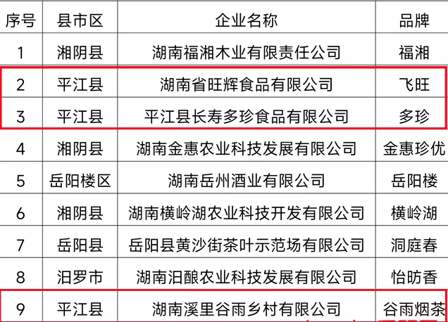 近日,湖南省商务厅公布了第七批“湖南老字号”认定名单,我县的湖南省旺辉食品有限公司、平江县长寿多珍食品有限公司、湖南溪里谷雨乡村有限公司等3家企业成功入选,为我县省级老字号品牌队伍再添新力量。