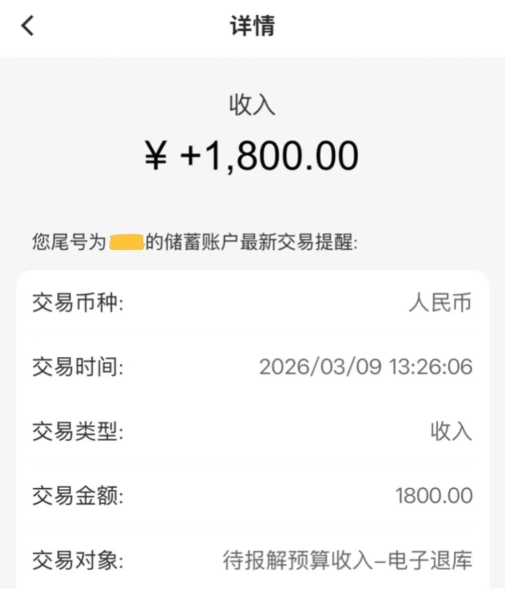 三月初,许多网友卡点干的第一件事就是退税。2025年度个人所得税综合所得汇算清缴汇算的时间为3月1日至6月30日,依然是“多退少补。”就在今天,已经有平江网友到账啦。
