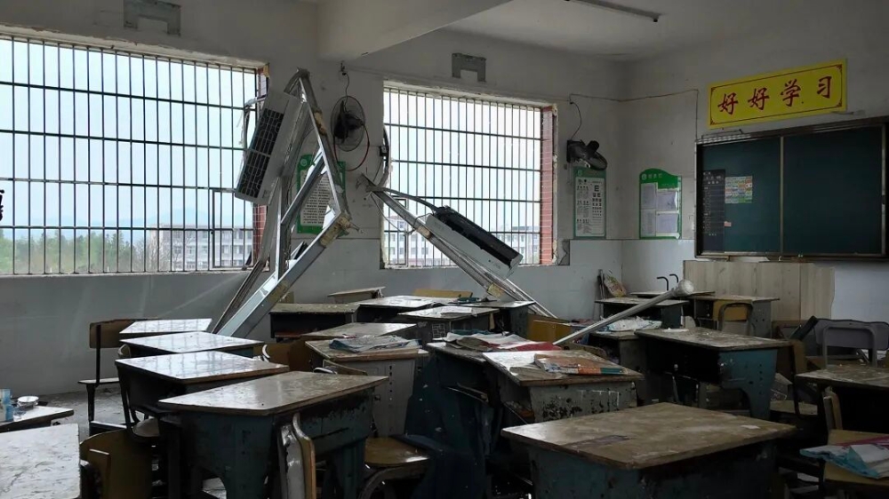 4月9日下午,加义镇中心小学的孩子们正如常上课。突然,一阵刺耳的呼啸声划破天际,教室的窗户被狂风刮得呼呼作响。