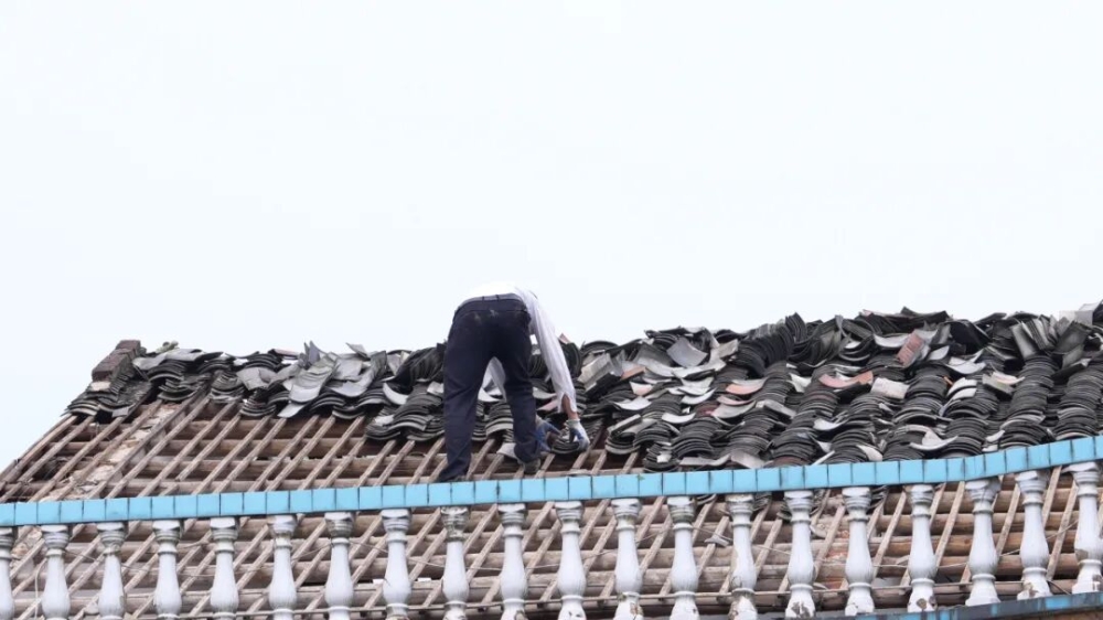 10日上午,记者走进受灾最严重的谢江村,沿河而居的农户房屋屋顶瓦片几乎全部受损,有的屋顶甚至出现较大破洞。但眼前的景象并非一片狼藉,而是一派忙碌的重建画面——暴雨初歇,村民们便抓住这间隙,纷纷爬上屋顶,小心翼翼地换下被冰雹砸碎的瓦片,再一片片铺上新瓦,“叮叮当当”的敲击声此起彼伏,奏响了灾后重建的序曲。