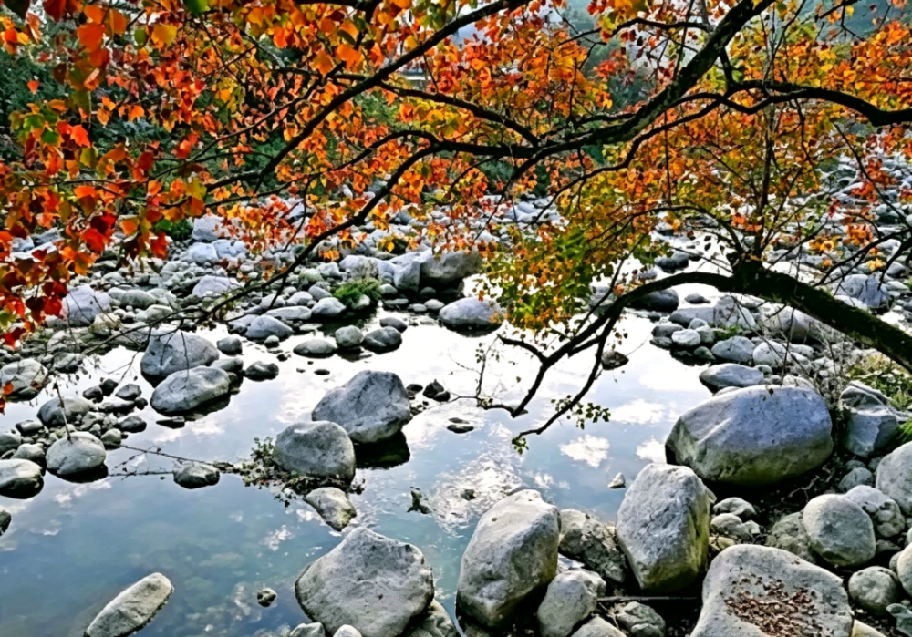 溪水在巨石间穿行,时而奔腾咆哮,时而温柔静谧。