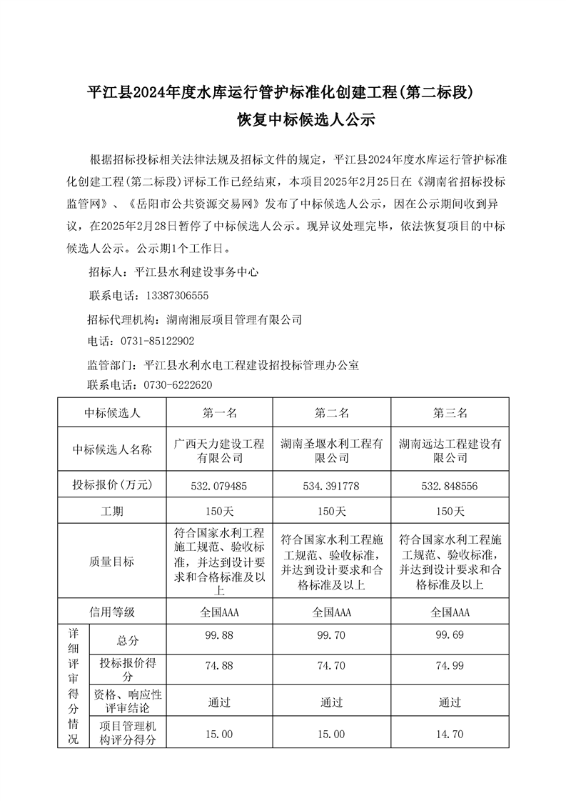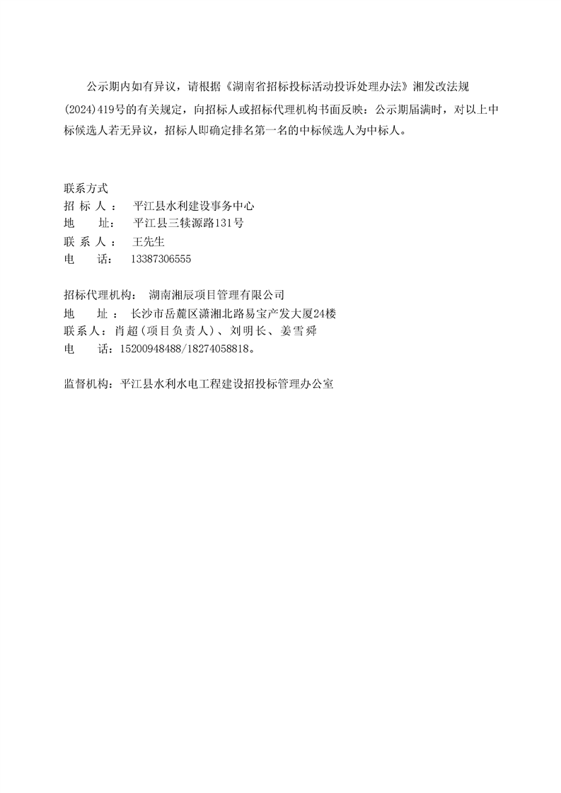 平江县2024年度水库运行管护标准化创建工程(第二标段)变更公告