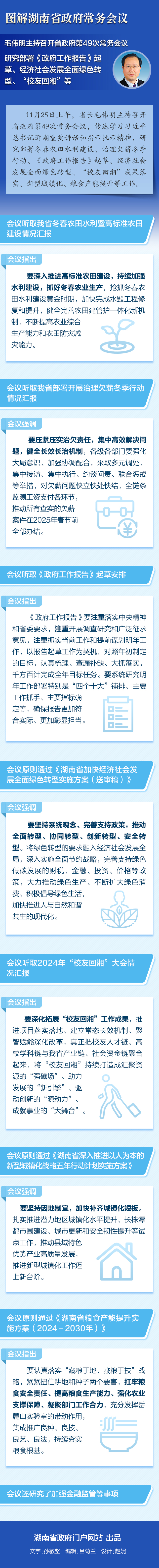 【图解】11月25日省政府常务会议:研究部署《政府工作报告》起草、经济社会发展全面绿色转型、“校友回湘”等