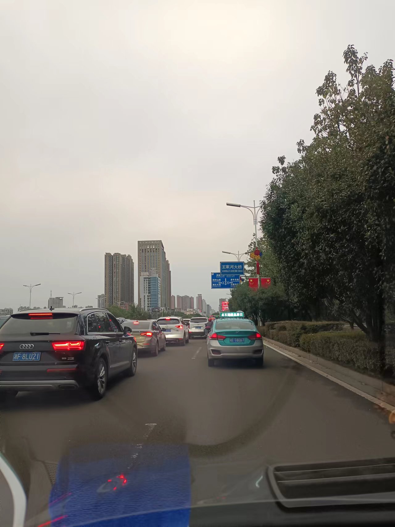 岳阳大道东往西右转至北港路,右转车道仅一条。每逢上下班高峰,右转车道被直行车辆强加塞,导致右转车道被堵(详见附图)。