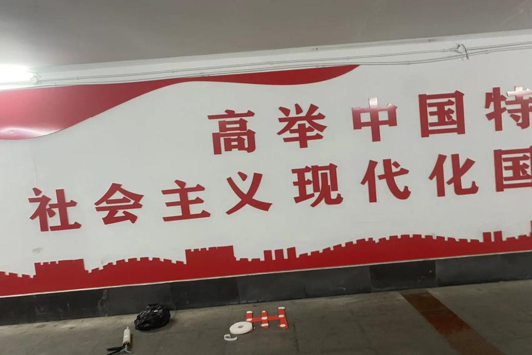 标题: 岳阳大道会展中心前地下通道文化墙字迹残缺,需要修补