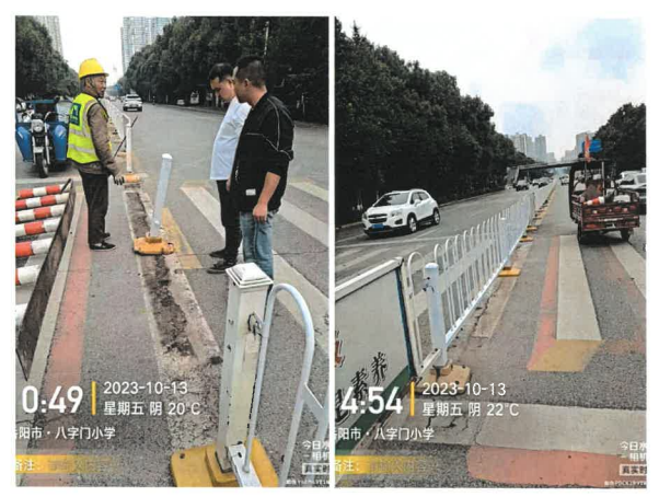 | 回复内容: | 热心市民: 您好!您的来信收悉。关于八字门小学门前斑马线人行道封闭的问题,现回复如下: 我部门对交通护栏只有维护维修的权利,交通道路加装或封闭都需要经过交警部门。在这个过程中我们未接到交警部门任何的工作联系函,并不是如您所说不作为。在接到您的来信后,我局非常重视,迅速安排我部门与交警部门对接,工作人员现场勘查。现交警部门已确定该斑马线人行道封闭加装护栏,我部门在接到信件当日就对该人行道斑马线加装了护栏(附图)。 特此回复。 感谢您的意见与监督,祝您生活幸福! 经开区城市管理和综合执法局公用事业科 2023年10月16日 |