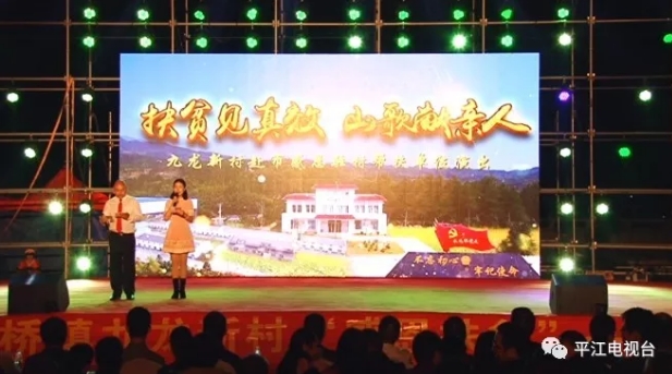 这次活动分“扶贫队员进农家”“九龙新村焕新颜”“昂首阔步奔小康”三个篇章。当晚7点半,演出正式开始,威风锣鼓《爱我中华》、男声独唱《为了谁》、九龙小调《乐善好施修桥人》等节目,给大家带来了一场精彩的视听盛宴。浓浓的感恩情,贯穿整个晚会。