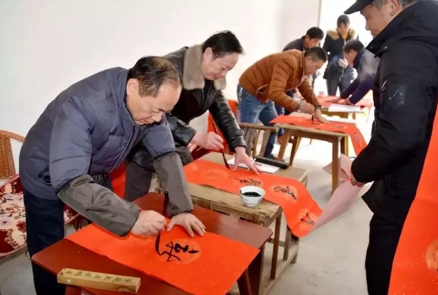 书法家们在安置点搭起桌凳,铺开红纸,一边与搬迁群众亲切交谈,一边泰然自若地奋笔疾书,为他们书写一副副大红对联。“屋宇更新圆好梦,惠风和畅感扶贫”、“易地安居千家乐,善政如霖百业兴”等对联,内容丰富,表达了搬迁群众对党和政府的感恩之情和发奋图强共奔小康的愿望。“感谢共产党,感谢你们啊”,拿到对联的村民们都非常高兴。