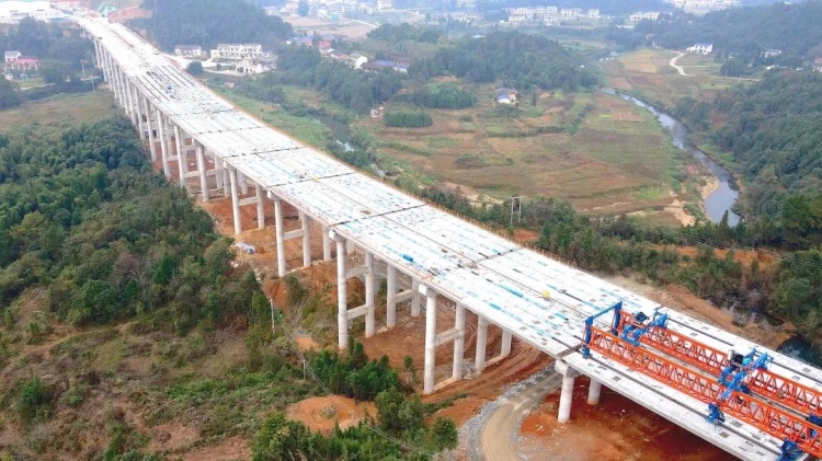 连日来,平益高速桥梁施工捷报频传:11月2日,平益高速九标吴家大桥最后一片箱梁完成架设。10月29日,平益高速七标太阳坡大桥全幅贯通。