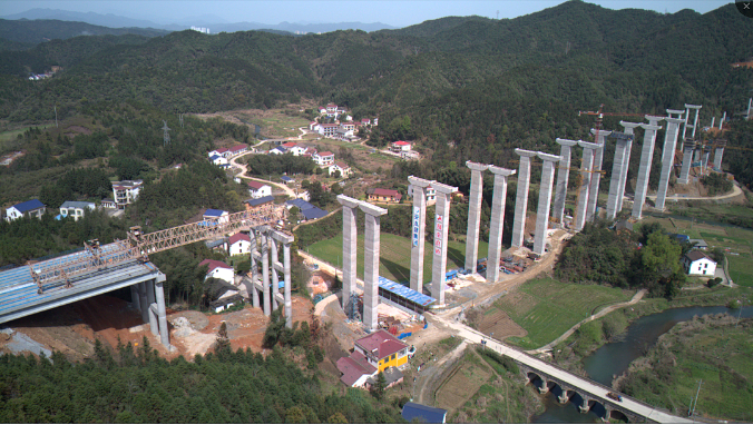 ▲平益高速(平江段)古家洞大桥架设现场