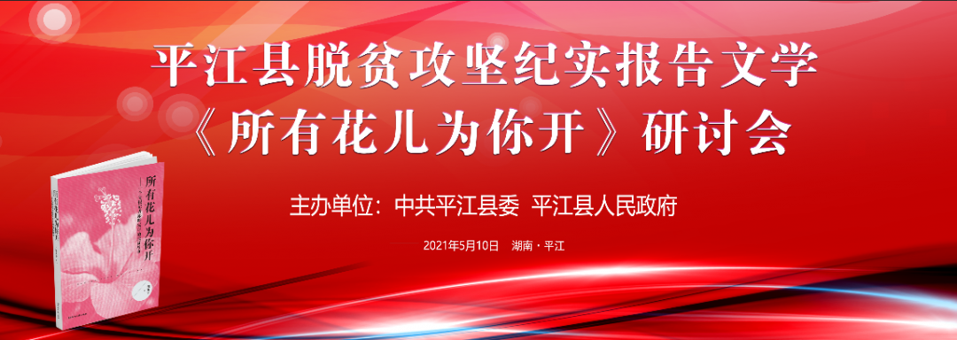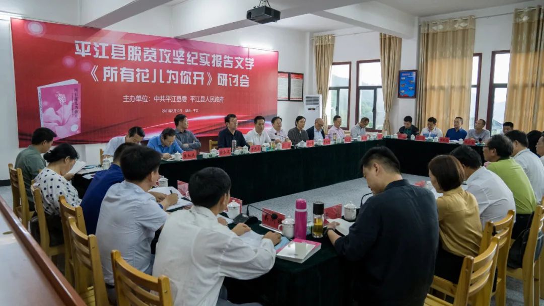 5月10日,平江脱贫攻坚纪实报告文学《所有花儿为你开》研讨会在瓮江镇盘石村举行。该书以报告文学形式勾勒群像,描摹时代,歌颂英雄,再现了平江扶贫开发的艰难曲折过程,描摹出脱贫摘帽后山欢水笑的动人场景。