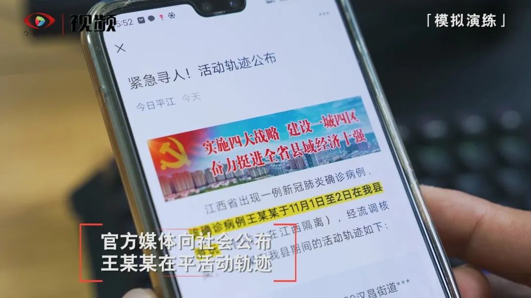 模拟现场从11月5日平江县突发公共卫生事件防控指挥部接到外省协查函开始,称外省1名新冠肺炎病例(王某某)1-2日期间曾到我县游玩。接报后,我县立即进行信息核实,并快速启动响应。