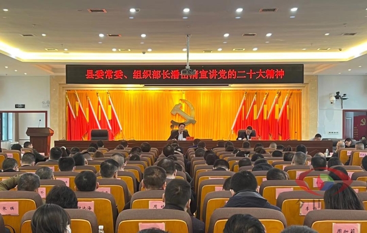 11月23日, 县委常委、组织部长潘岳清来到汉昌街道,以《踔厉奋发担使命, 勇毅前行夯基础》为题,为全县基层党支部书记开展了一次党的二十大精神专题宣讲。