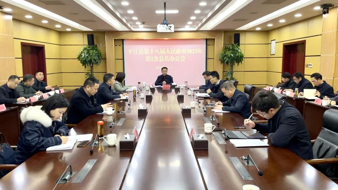 2月1日,县委副书记、县长彭方建主持召开平江县第十八届人民政府2023年第1次县长办公会。县政府和县政府办全体班子成员以及相关科室负责人等参加。