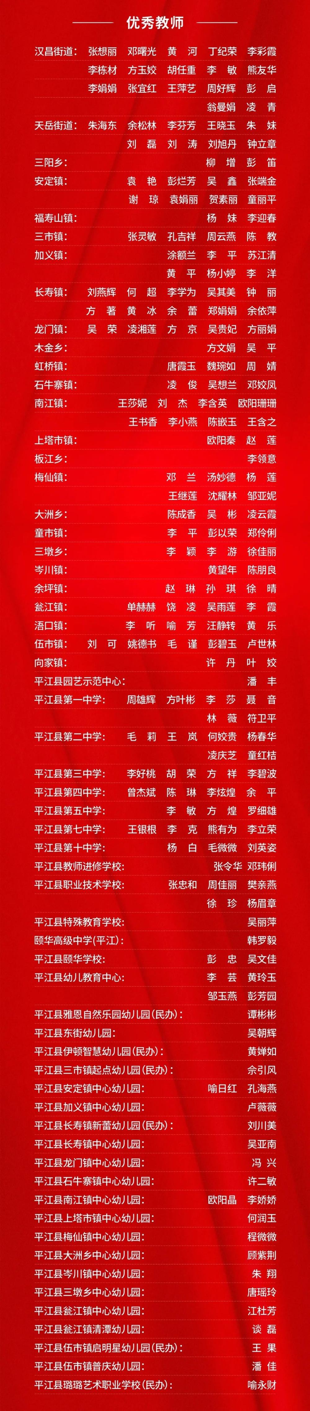 一起来看看,此次受表彰的优秀教师和教育工作者,有你认识的吗。