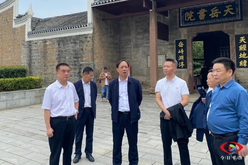 10月10日,市委常委、宣传部长刘启峰带队到平江县加义镇喻杰故居、李六如故居,汉昌街道天岳书院督导湖南红色旅游文化节筹备工作情况,市委宣传部副部长章宏平,县委书记李勇,县委副书记、政法委书记鲁勇,县委常委、宣传部长田浩,副县长李三军、阳郑、朱远陪同。