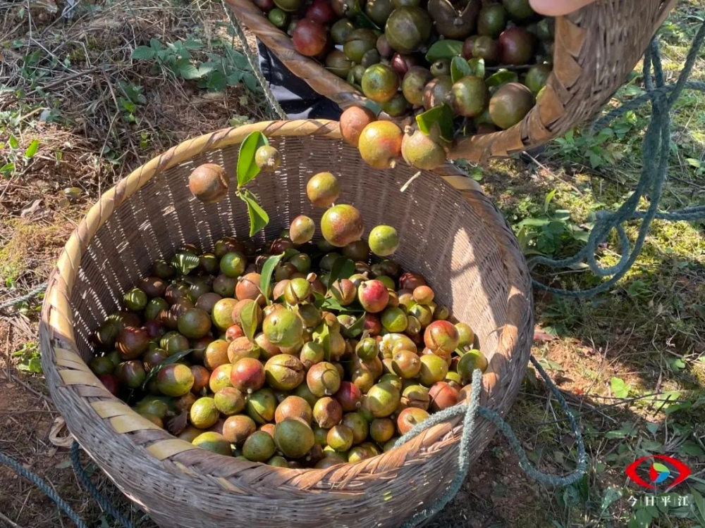 当天下午,深坑村的工人们背着背篓,动作利索地将油茶果摘下装篮。这些工人都是附近村民,他们将自己的土地流转出来,给企业建油茶基地,不仅能收到土地流转费,还能在“家门口”实现就业,成为农业工人,直接增加收入。