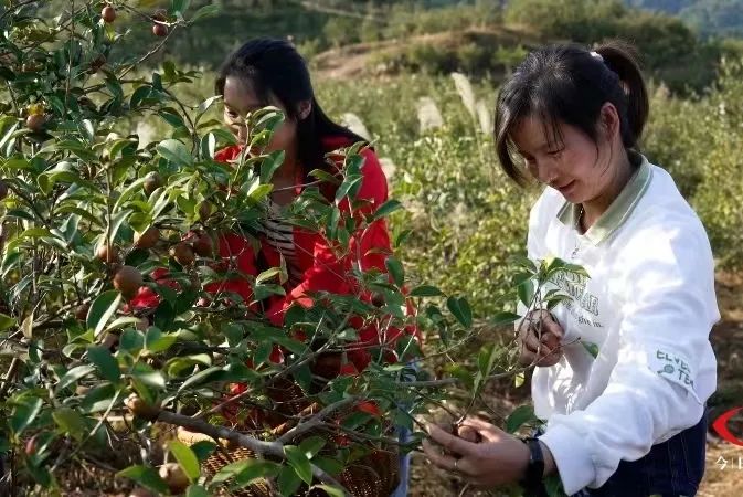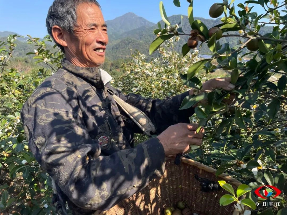 除了这种农户自产自销的模式外,余坪镇深坑村油茶基地创新“合作+”联农带农模式,建立“企业+合作社+农户”的运营模式。从一棵树到一片林,从零星种植到规模化种植,油茶树已成为当地村民的致富树。