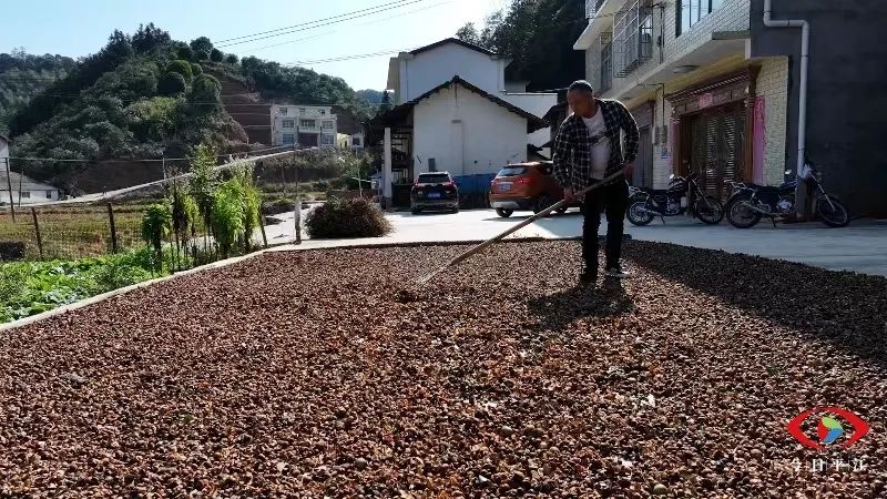 10月23日,走进平江县三墩乡,盘山路两旁的房屋门口堆满了黝黑的油茶果。农户们挎着背篓,带着草帽,穿梭在一棵棵茶树间。不一会儿,一袋袋油茶果便从山丘上运送下来,被摊开在庭院里晾晒......