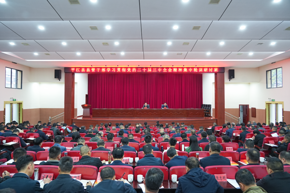 学习宣传贯彻党的二十届三中全会精神是当前和今后一个时期的重大政治任务。举办本次专题轮训研讨班的主要目的就是对标中央和省市做法,在前一阶段学习贯彻的基础上,引领全县上下进一步在深学细悟笃行上下功夫,更好推动党的二十届三中全会精神在平江落到实处、取得实效。