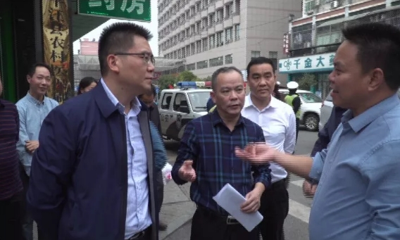 肖湘晖一行先后来到北街人民医院路口、金华市场、东街多米菜市场、天岳汽车站、神帆大酒店、金财苑工地、天岳广场等地督查,现场研究、交办发现的问题,了解创建工作相关情况。