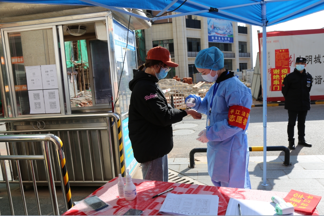 在抗击疫情的前线上,平江法院“一盘棋”,上下“一条心”,党员干警尽锐出战,充分发挥先锋模范作用,以初心与使命构筑了疫情群防群治的严密防线。(胡艳兰)